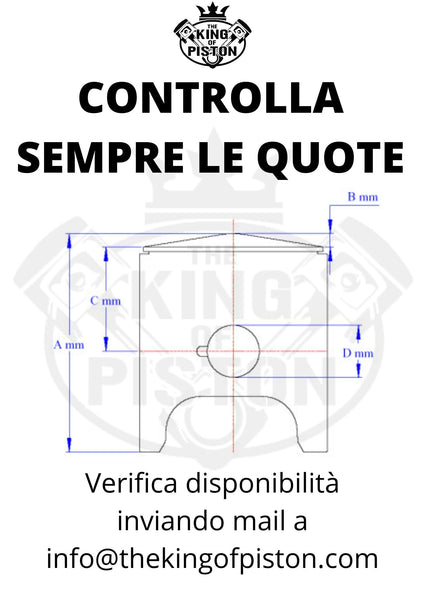 Verificare sempre quote e diametro. Se pistone non è più in produzione o non abbiamo giacenza o vuoi apportare qualche modifica rispetto all'originale lo ricostruiamo da campione identico oppure con modifiche richieste!