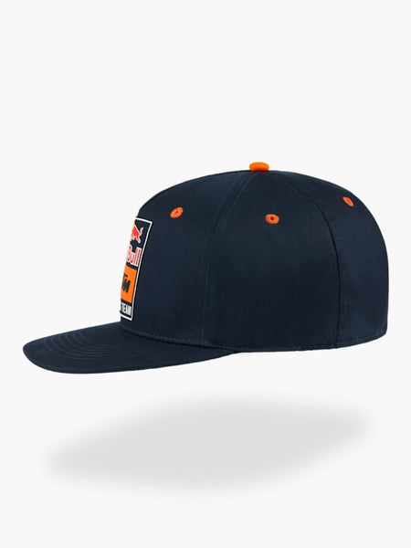 Aggiungete un tocco di orgoglio a qualsiasi abbigliamento con questo classico e comodo cappellino snapback con il marchio del Red Bull KTM Racing Team.